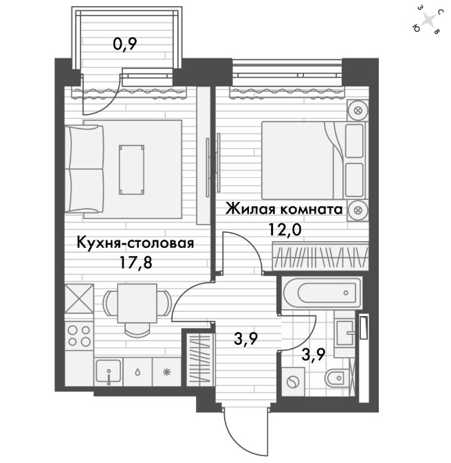 Площадь от 34.7 м2