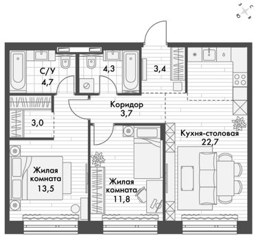 Площадь от 67.3 м2