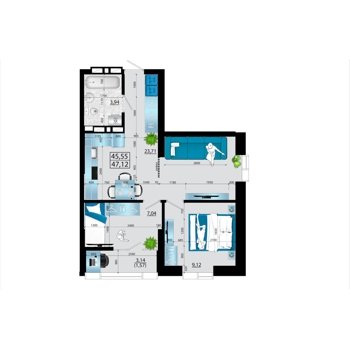 Площадь от 47.12 м2